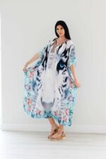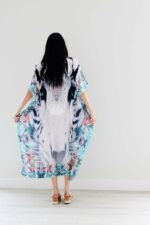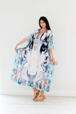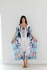 Kaftan dresses can also act as perfect beach cover-ups. Easy and breezy, these multicolored Kaftans accentuate your look. Whether its beach party or a holiday trip, you can wear a kaftan dress anytime to look good on all occasions. This gorgeous, green feather Caftan, with beautifully embellished details is the right outfit for a casual date, a stroll by the beach, by the poolside, or just about anywhere.