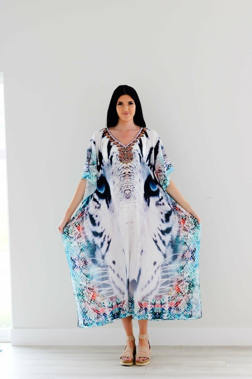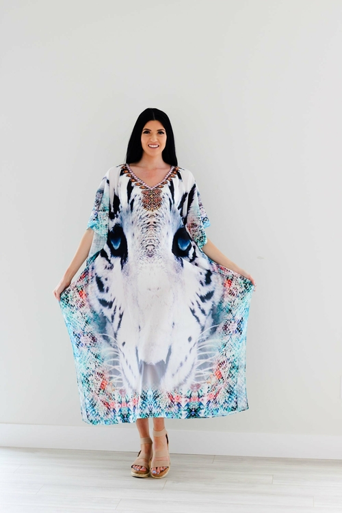 Tribal Kaftan Dress, Caftan With Tiger, Plus Size Kaftan